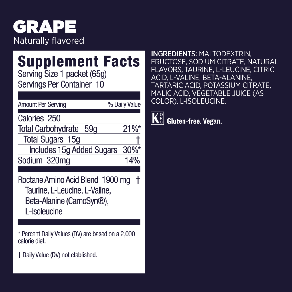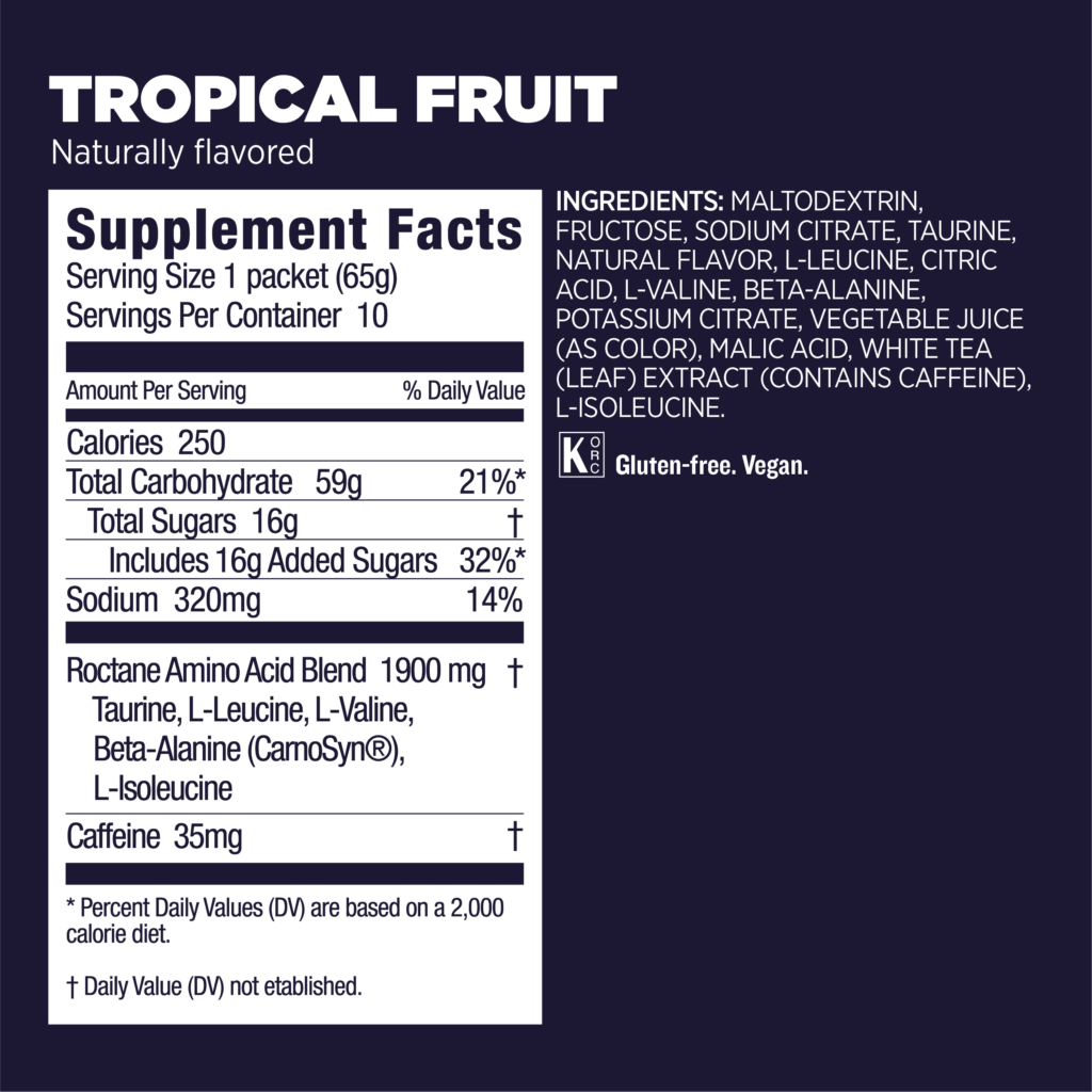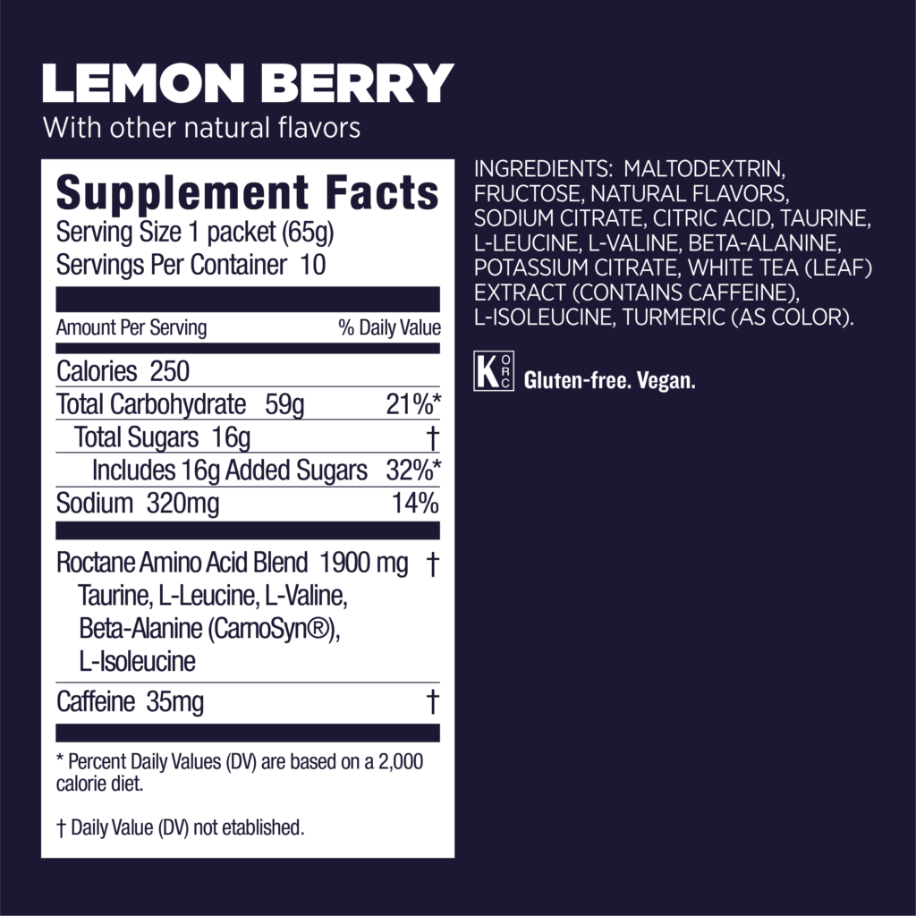 Το Roctane Energy Drink έχει super ελαφριά γεύση και βελούδινη υφή, σε μια φόρμουλα που διαλύεται εύκολα στο νερό, τροφοδοτώντας σας συνεχώς με ενέργεια ακόμα και μετά από πολλές ώρες προπόνησης ή αγώνα.
