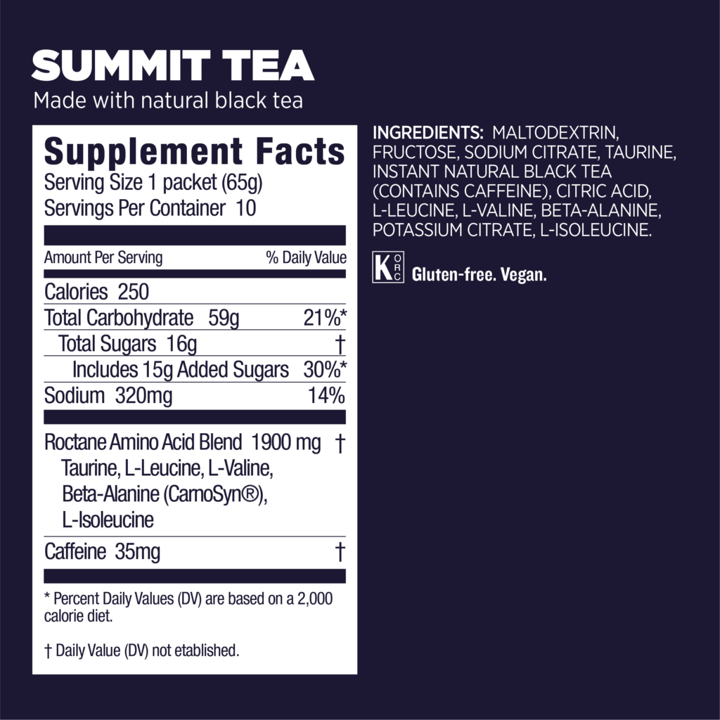 Κάθε δόση περιέχει 250 θερμίδες από απλούς και σύνθετους υδατάνθρακες που έχουν σχεδιαστεί για γρήγορη απορρόφηση και παροχή άμεσης ενέργειας, καθώς και ηλεκτρολύτες όπως νάτριο και κάλιο έτσι ώστε να λαμβάνετε τις θερμίδες σας και συγχρόνως να ενυδατώνεστε μέσα από μόνο ένα ποτό.