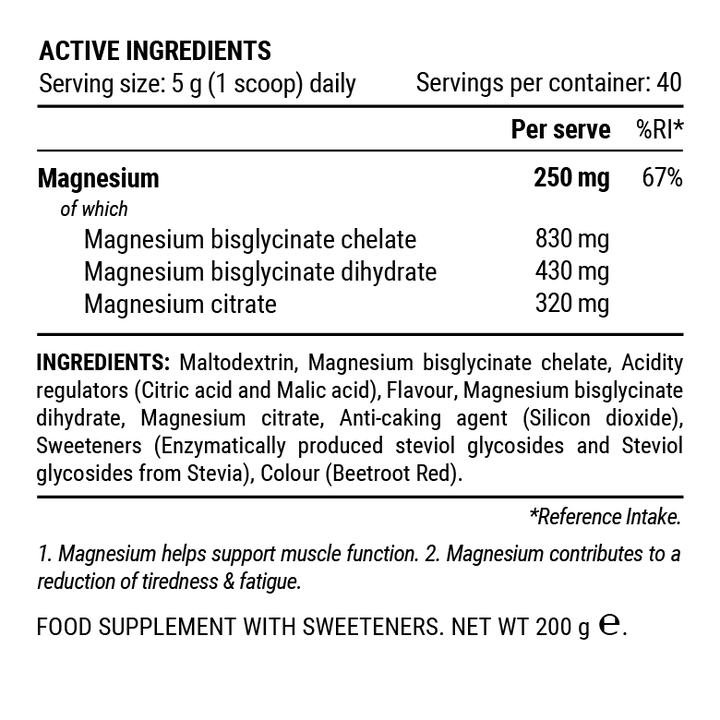 Berry: Η σκόνη PILLAR Triple Magnesium με γεύση Berry είναι μοναδικά αρωματισμένη με εκχύλισμα φράουλας και παντζαριού για χρώμα, το οποίο περιέχει έναν ειδικό συνδυασμό ενώσεων που δεν βρίσκονται σε πολλά άλλα τρόφιμα. Η PILLAR έχει συμπεριλάβει τα παντζάρια σε αυτό το προϊόν αποκατάστασης καθώς έχουν συσχετιστεί με μια τεράστια γκάμα πλεονεκτημάτων, ιδίως την καρδιαγγειακή υγεία και την υποστήριξη του σακχάρου στο αίμα.